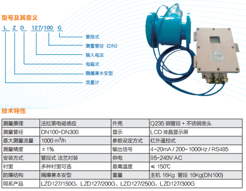LZD127/100G矿用隔爆兼本安型流量计技术特性