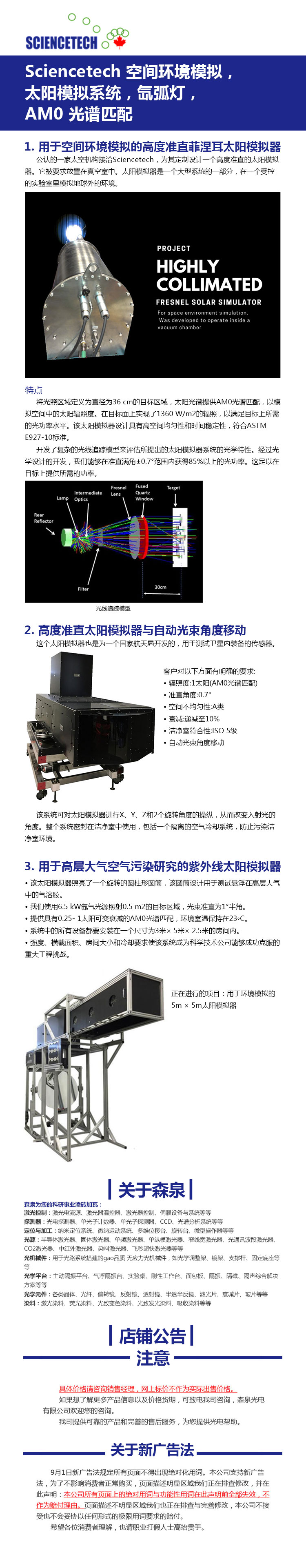 Sciencetech 测试太空设备热特性和机械特性,太阳模拟器
