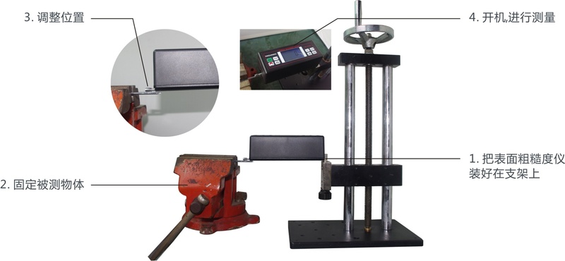1. 把表面粗糙度仪装好在支架上; 4. 开机,进行测量.