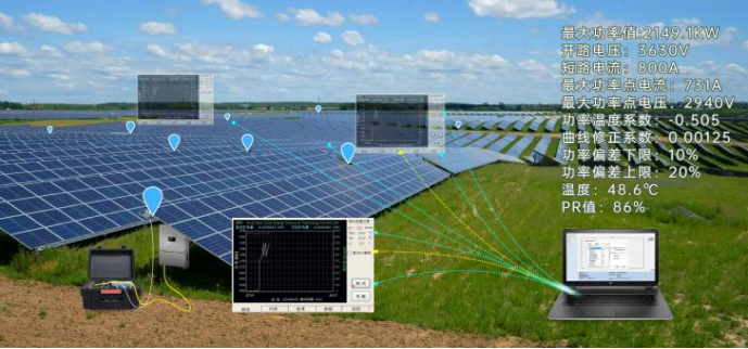 2. 通过累计的发电量计算及累计辐照度测量计算,获取光伏阵列的实时转换效率,能够及时发现光伏阵列的故障,可供可靠的故障诊断⽅法,可固定现场长期监测,防护等级⾼,适⽤电站现场测试并可远程以太⽹监控 数据处理