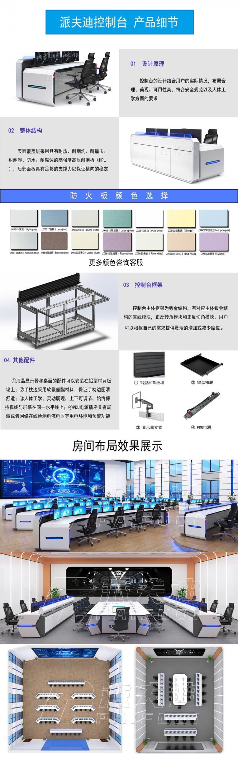 结合人体工程学和美学观点,将现代化监控环境下的室内装修风格考虑其中,搭配多角度模块化的可拼接结构,开放式桌面解决方案,在保证造型简洁美观,功能多样实用的同时,还具备可拓展性功能,实现技术升级。