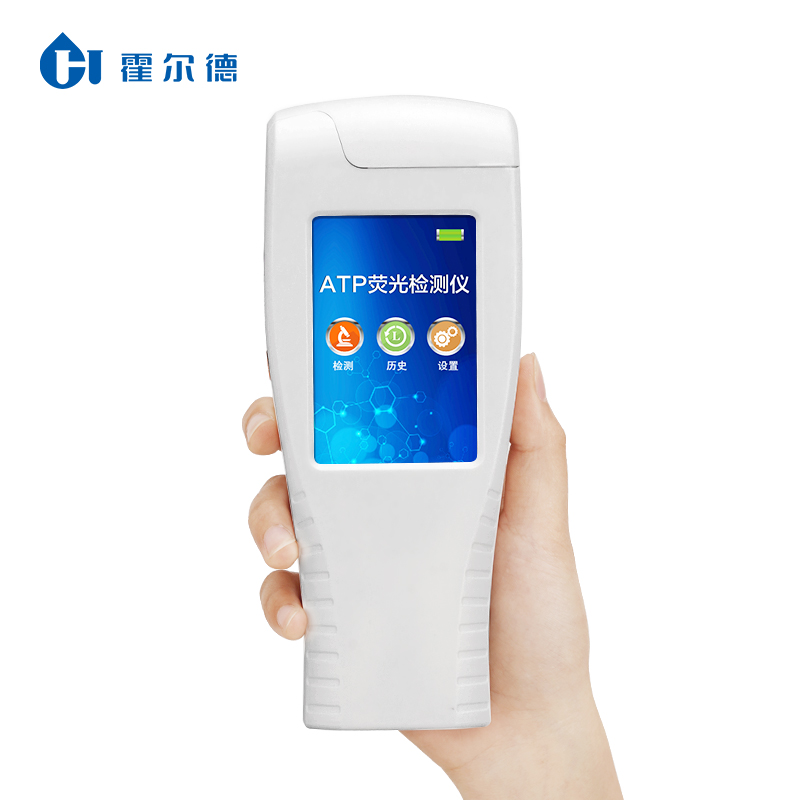 ATP生物荧光检测仪是山东霍尔德电子科技有限公司自主研发上市全新升级产品,大屏幕触摸显示屏,代替传统按键。操作采用生物化学反应方法检测ATP含量,ATP荧光检测仪基于萤火虫发光原理,利用“荧光素酶—荧光素体系”快速检测三磷酸腺苷(ATP)。ATP拭子含有可以裂解细胞膜的试剂,能将细胞内ATP释放出来,与试剂中含有的特异性酶发生反应,产生光,再用荧光照度计检测发光值,微生物的数量与发光值成正比,由于所有生物活细胞中含有恒量的ATP,所以ATP含量可以清晰地表明样品中微生物与其他生物残余的多少,用于判断卫生状况。