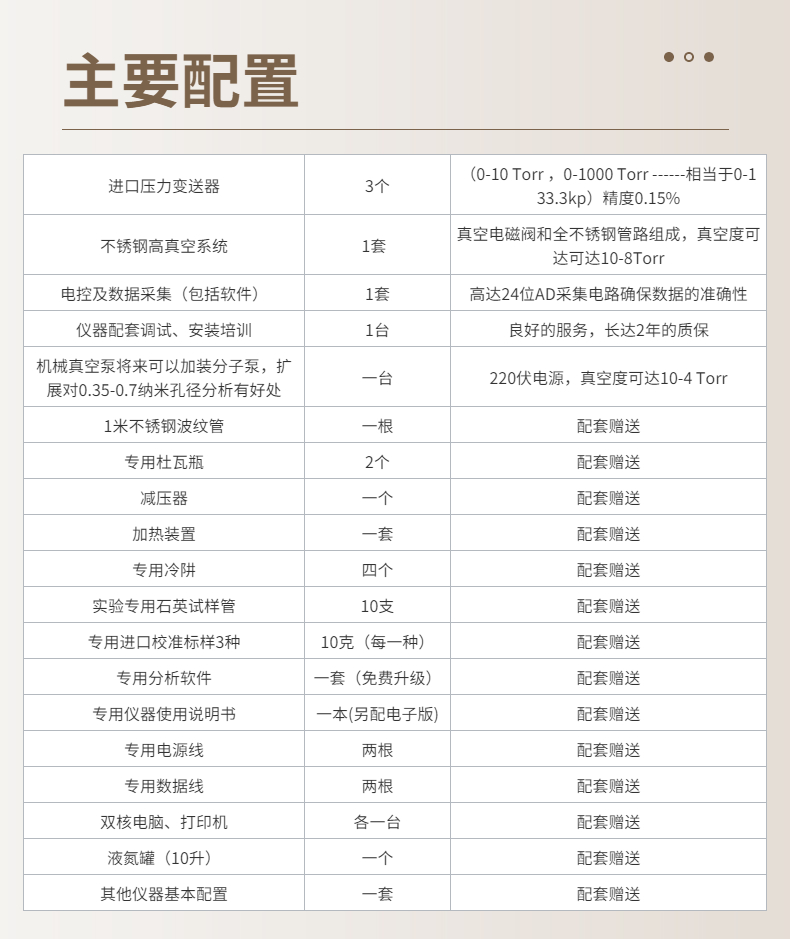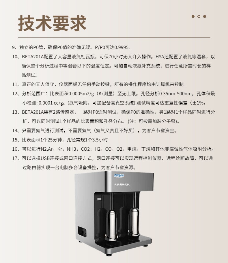 16. 可以进行N2,Ar,Kr,NH3,CO2,H2,CO,O2,甲烷,丁烷和其他非腐蚀性气体吸附分析。