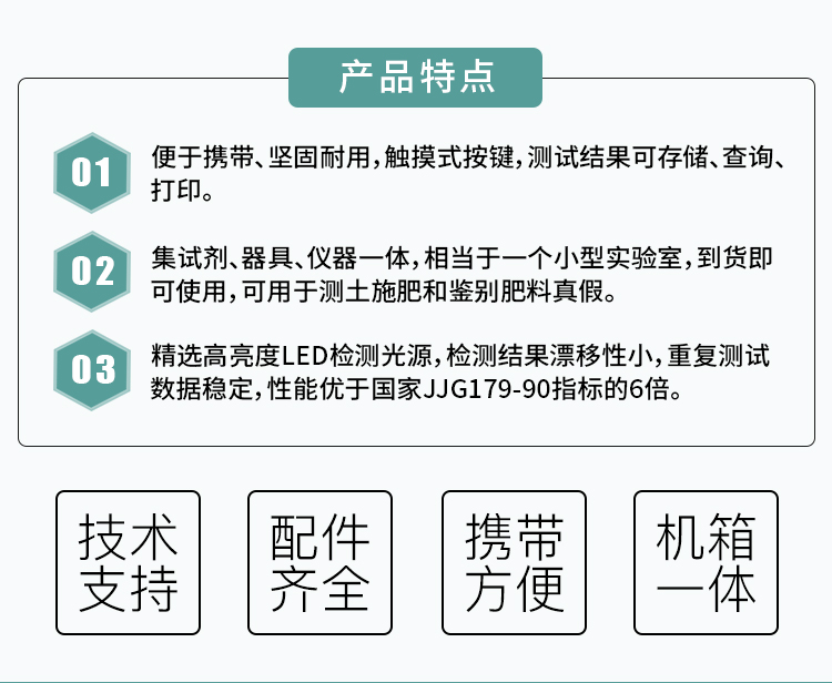 11.测试速度:测一个土样(N、P、K)≤30分钟(含前处理时间)