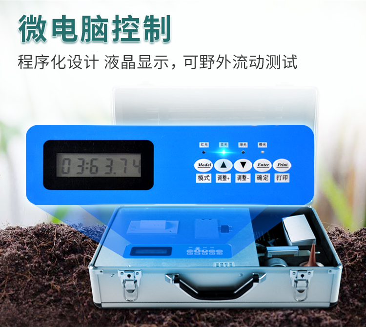土壤肥力测试仪可检测土壤及化肥、有机肥、植株中的SX氮、有效磷、SX钾、全氮、全磷、全钾、有机质含量,土壤酸碱度,含盐量(扩展)。微电脑控制,数字化线路、程序化设计,液晶显示,交直流两用,可野外流动测试,大程度降低操作者的失误和劳动强度。